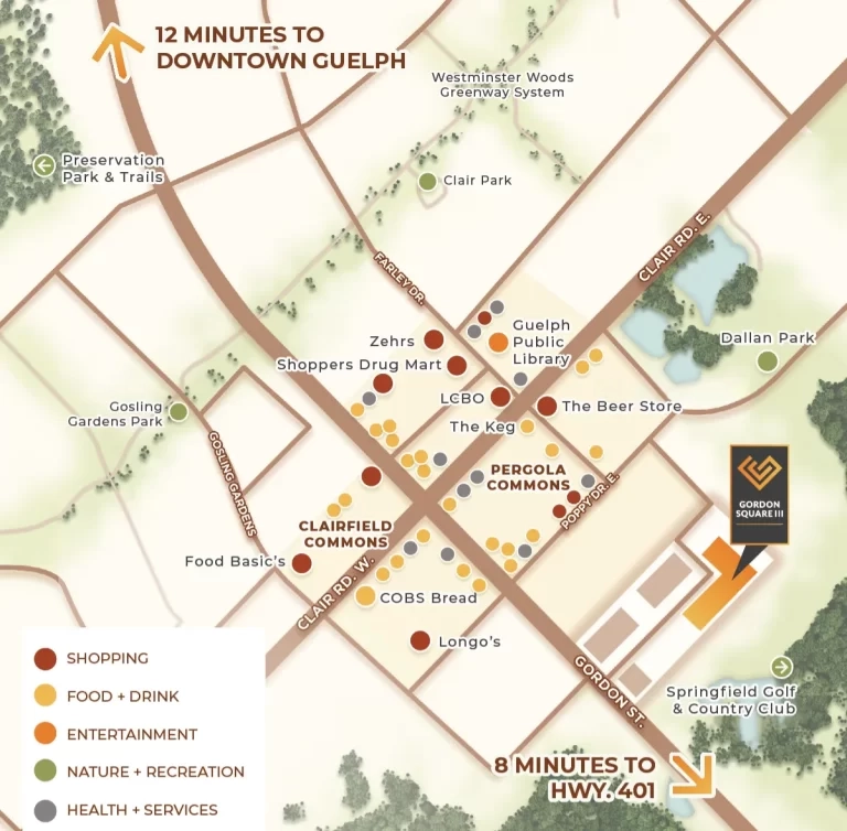 A vibrant lifestyle awaits you at Gordon Square; Guelph’s Premier Condominium Community. The final phase of this landmark community offers homeowners elegant and spacious suites and impressive building amenities. Gordon Square III invites you to enjoy recreation, leisure, outdoor trails and parkland all within your community. Discover the convenience that condominium living offers.